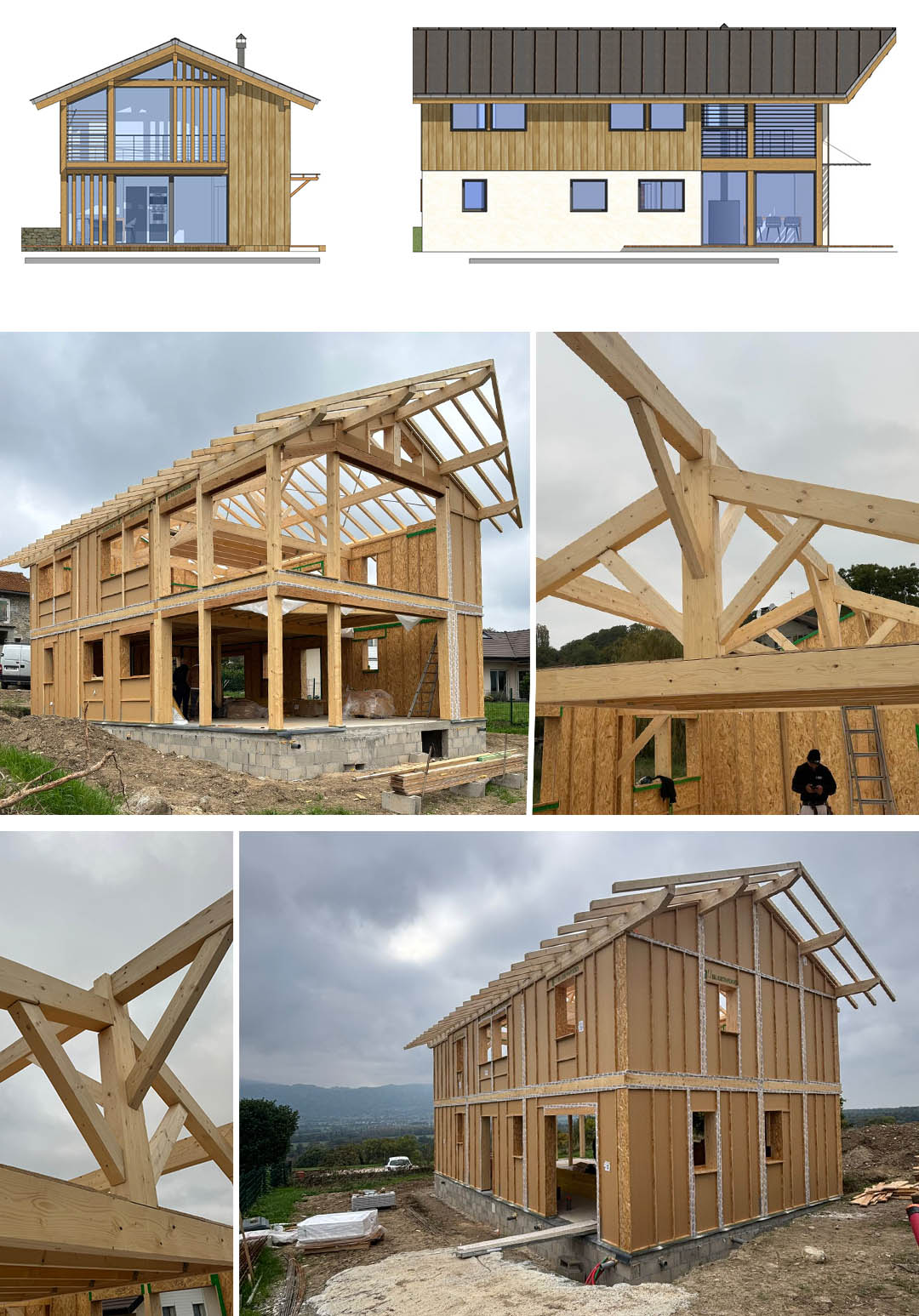 Découvrez cette élégante maison Blokiwood de 80 m² au sol, dotée d’une charpente traditionnelle, de grandes baies vitrées et d’un généreux vide sur séjour. Son avancée de toit apporte caractère et confort, pour une architecture à la fois moderne et chaleureuse.